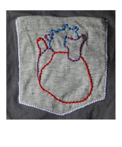 ![]() Detalle: Corazón bordado en bolsillo de remera. | ![]() Cuaderno de dibujo: Encuadernado artesanal. | ![]() Detalle de órganos bordados en remera. |